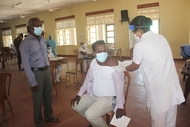 இன்று(09) பிரதேச சபை உத்தியோகத்தர்கள், பிரதேச செயலக உத்தியோகத்தர்கள் என 220 பேருக்கு தடுப்பூ ஏற்றப்பட்டன. நேற்று(08) பாதுகாப்பு படையினர், பொலிஸார் என 154 பேருக்கு தடுப்பூ வழங்கப்பட்டிருந்தன.